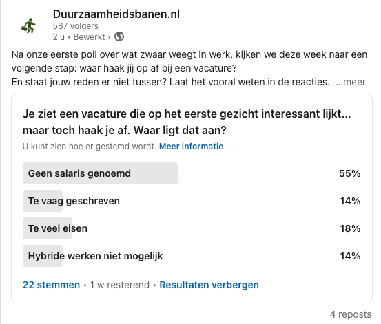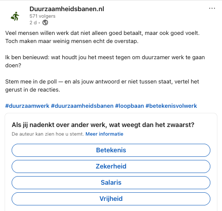Wat weegt voor jou het zwaarst in werk en leven? Bekijk de actuele poll en stem direct via LinkedIn.